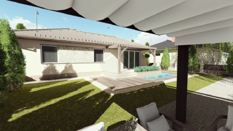 Győr közelében Écsen, újonnan épülő, igényes kialakítású, tégla építésű családi ház leköthető.