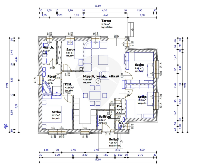 Továbbá az ár tartalmazza a komplett tervezői díjat(gépészet, metszetek, statika, energetika, engedélyek), plusz egy inverteres(hűtő-fűtő) klímát!