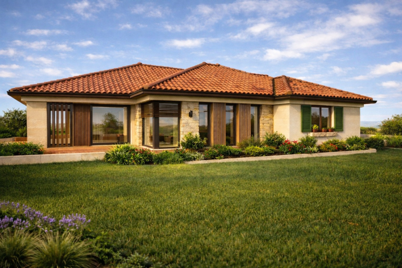 A jelenlegi árajánlatban az otthon melegéről gáz-cirkó kazán gondoskodik, padlófűtéses hőleadással, de a fűtésrendszer is az építtető igényei alapján módosítható!
