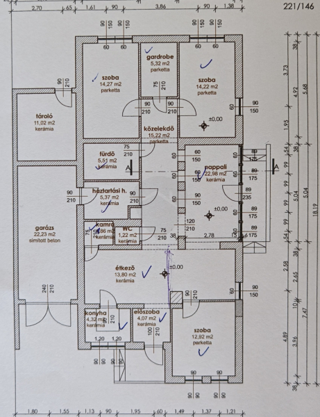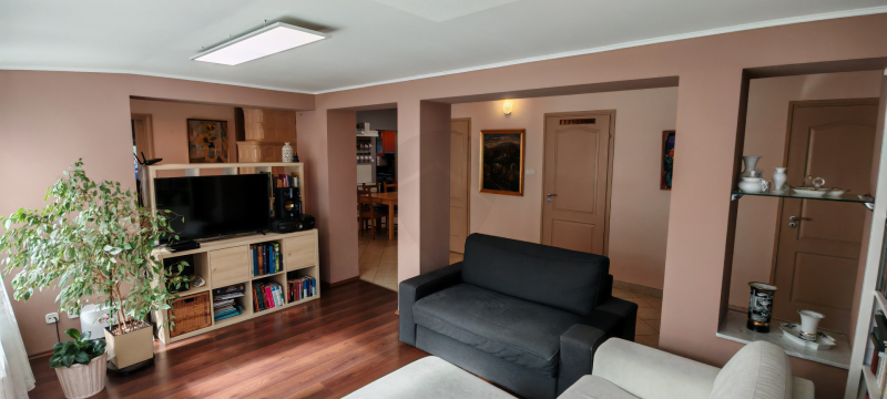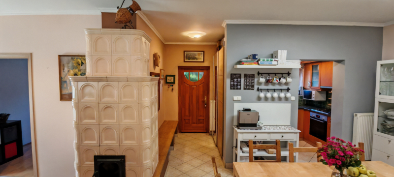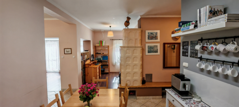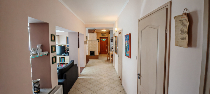 A házban nappali + három szoba található, így bőven van hely a családi élethez, valamint a vendégek fogadásához, az ingatlan további helyiségei: konyha, étkező, kamra, előszoba, közlekedő, gardrób, háztartási helyiség, fürdőszoba+wc és egy külön mellékhelyiség.